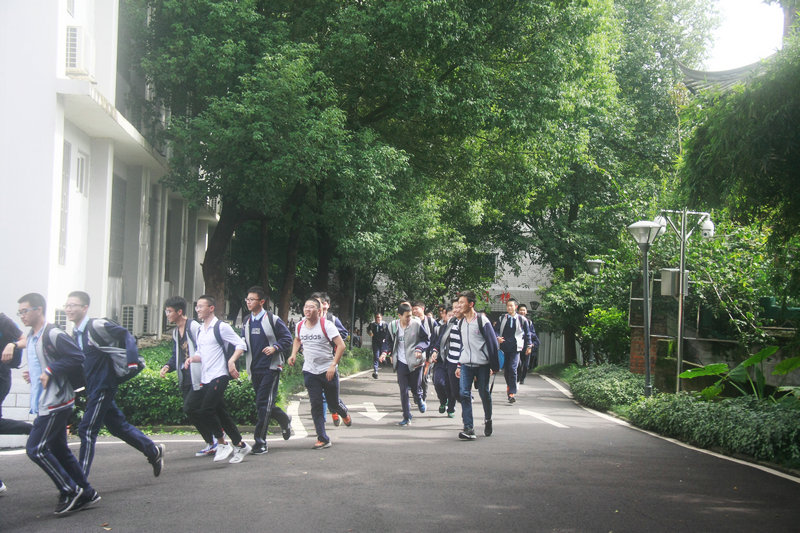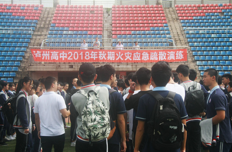 9月29日中午,平時很寧靜的瀘高校園,卻出現(xiàn)了許多校領導和教職工,他們分散在四面八方的每一個路口,似乎在等待某個時刻的到來。忽然一陣刺耳的警報聲劃破長空,學生們從各個區(qū)域的寢室里飛奔出來,向運動場跑去……