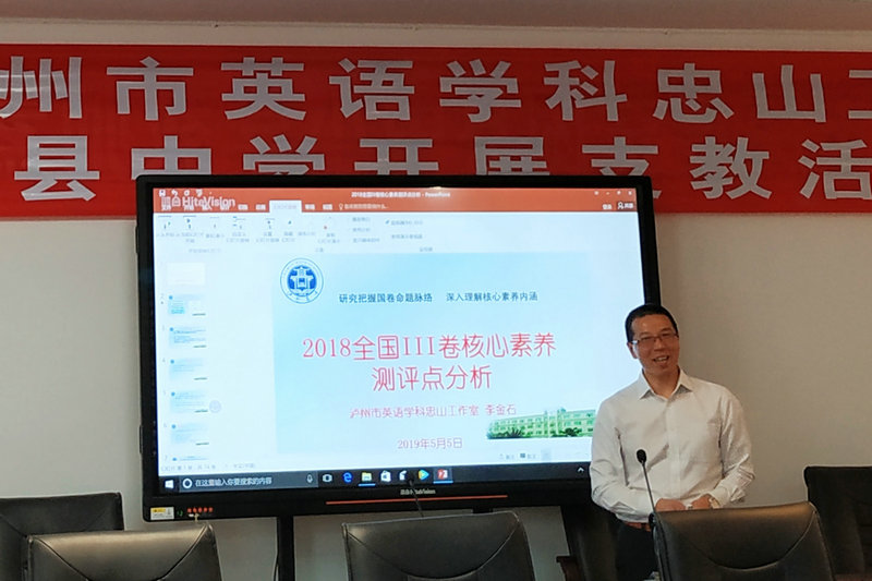4日晚,劉中楷用英文向普格中學(xué)師生講述紅軍長征過涼山、劉伯承與小葉丹結(jié)盟的故事,“彝海情深”感動人心,贏得普格中學(xué)師生的陣陣掌聲。5日上午,王成林、翟曉根為普格中學(xué)師生獻上兩堂示范課;作為教學(xué)交流,普格中學(xué)年輕教師夫黎明也上了一堂示范課展示;下午,李金石以“2018年全國Ⅲ卷核心素養(yǎng)測評點分析”為題開展講座。接下來,作為領(lǐng)銜人的劉中楷介紹了英語學(xué)科忠山工作室的基本情況,并以“破除碎片化,提高教學(xué)效率”為題開展講座。