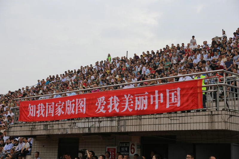 隨后,約2000名學(xué)生身著統(tǒng)一服裝,在學(xué)校體育場排列成“中國”兩個字樣的方隊,舉行了隆重的升旗儀式。升旗禮畢,學(xué)校有關(guān)領(lǐng)導(dǎo)向師生進行國家版圖意識主題宣講,強調(diào)國家版圖是一個國家行使主權(quán)和管轄權(quán)的疆域,體現(xiàn)了國家在主權(quán)方面的意志和在國際社會中的政治、外交立場,同國旗、國徽、國歌一樣,是國家的象征。方隊鑲嵌有五星紅旗、國家版圖圖案,活動在學(xué)生氣勢磅礴的“知我國家版圖,愛我美麗中國”呼號聲中達到高潮。