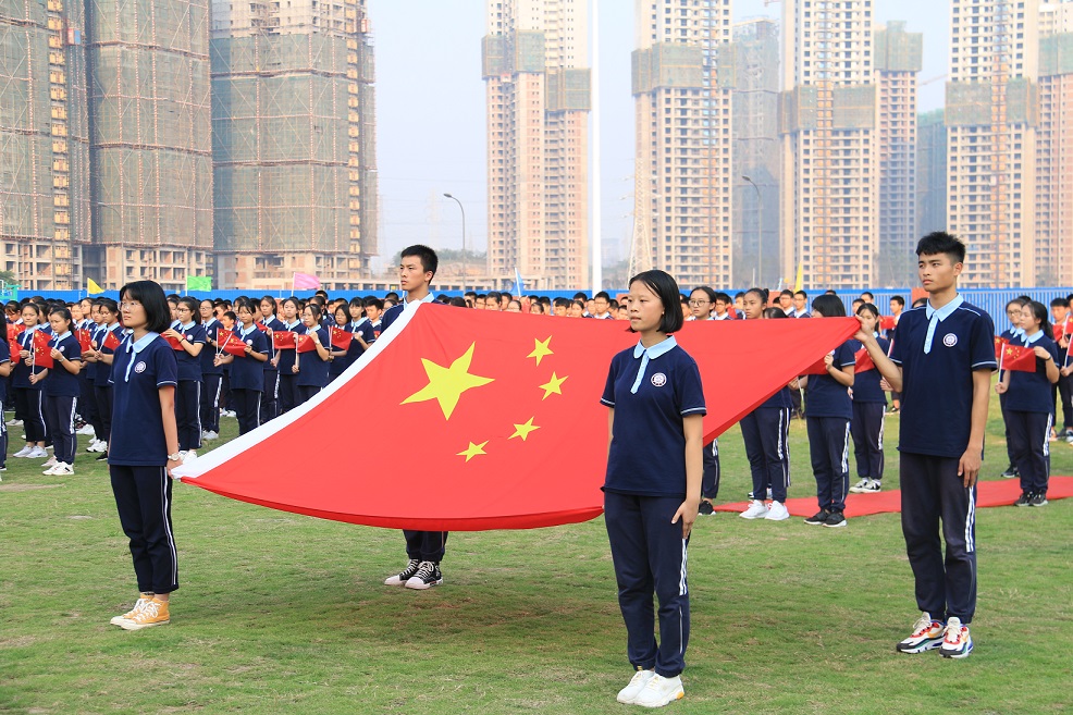 獻禮祖國: 丹桂飄香,碩果累累,瀘州高中(城西校區(qū))全體師生歡聚操場,升國旗,唱國歌,齊唱《我和我的祖國》,獻禮祖國。音樂響起,仿佛聽到某種召喚,仿佛帶著某種使命,全體師生盛裝而來,隨著音樂節(jié)拍,放慢腳步,托舉出鮮艷的五星紅旗,并放聲歌唱《我和我的祖國》。優(yōu)美的旋律縈繞在瀘州高中(城西校區(qū))每一個角落,熱愛祖國的深情激蕩在每個人的心田。