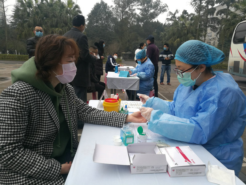 ??2月25日,一輛采血車停駐在瀘州高中忠山校區(qū)運動場,該校志愿者正為抗擊新冠肺炎獻出寶貴鮮血。獻血志愿者有學校領導、管理干部和教職工20余人。據(jù)悉,一些志愿者已多次無償獻血,“我已累計獻血1000多毫升了,每次獻血都是400毫升。”化學教師王輝說道。有的志愿者因超齡而沒得到獻血許可表示遺憾。(古邦倫)