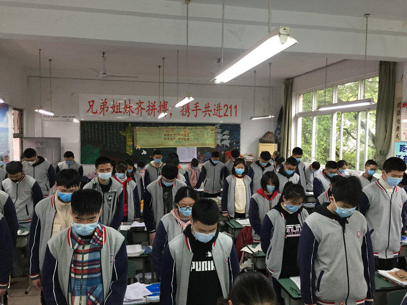 為了表達對犧牲烈士和逝世同胞的深切哀悼,該校根據(jù)國務(wù)院通知精神,結(jié)合自身實際,分多條線舉行哀悼儀式。在德育處和校團委的精心組織下,高三年級學(xué)生和上課教師在各班教室舉行,高二、高一年級學(xué)生在家參與,未上課的教師原地參與,行政后勤員工在學(xué)術(shù)報告廳舉行。同時還舉行降半旗儀式。