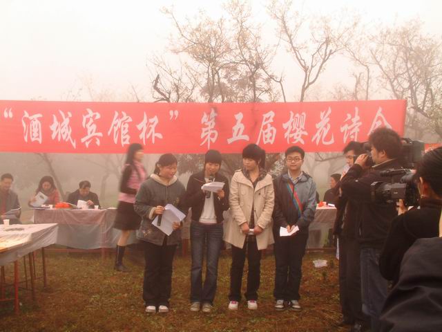 在詩(shī)會(huì)中,當(dāng)四位在與會(huì)者中年齡最小、稚氣未脫的中學(xué)生走進(jìn)會(huì)場(chǎng)朗誦他們創(chuàng)作的詩(shī)歌時(shí),立即引起詩(shī)人們的極大關(guān)注,各媒體的記者們更是“長(zhǎng)槍短炮”對(duì)著他們拍個(gè)不停。他們就是來(lái)自于瀘州高中松濤文學(xué)社和詩(shī)詞楹聯(lián)社的劉禹婷、肖堯、林可怡、姜乙苗。別看他們年紀(jì)小,他們帶來(lái)的作品卻非同尋常,四位同學(xué)中有三位朗誦的是傳統(tǒng)詩(shī)詞中的格律詩(shī),朗誦新詩(shī)的也有較高水準(zhǔn),讓與會(huì)的詩(shī)人們刮目相看,連瀘州市詩(shī)詞學(xué)會(huì)會(huì)長(zhǎng)、原瀘州市副市長(zhǎng)楊正康也驚喜不已,當(dāng)即決定專門為他們組織一個(gè)座談會(huì),邀請(qǐng)他們?cè)谶m當(dāng)?shù)臅r(shí)候到詩(shī)詞學(xué)會(huì)座談。本屆詩(shī)會(huì)的組織者為瀘高學(xué)子特設(shè)了鼓勵(lì)獎(jiǎng),劉禹婷評(píng)為三等獎(jiǎng)。他們的參會(huì),為本屆櫻花詩(shī)會(huì)增色不少。