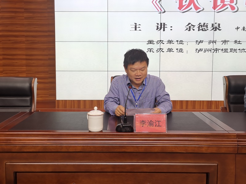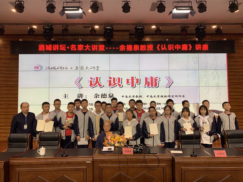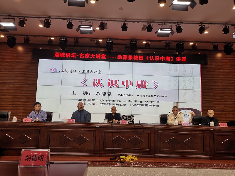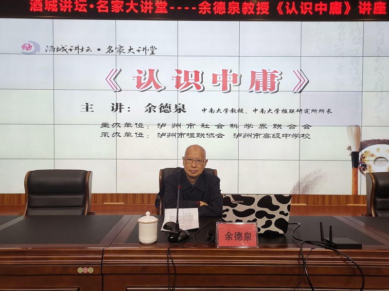 10月14日,瀘州市社會科學界聯(lián)合會組織,瀘州高中、瀘州市楹聯(lián)協(xié)會協(xié)辦的酒城講壇名家大講堂,在瀘州高中致知樓學術(shù)報告廳精彩開講。中南大學教授,中南大學楹聯(lián)研究所所長,中國首位對聯(lián)學研究生導師,中央文史研究館書畫研究院研究員,湖南省文史研究館館員,中國楹聯(lián)學會顧問,湖南省楹聯(lián)家協(xié)會名譽主席余德泉現(xiàn)場,為近300位瀘州楹聯(lián)家協(xié)會會員、瀘高學子作了專題講座——《認識中庸》。