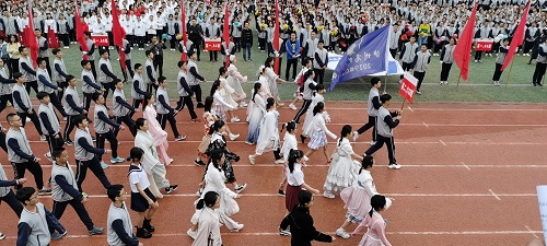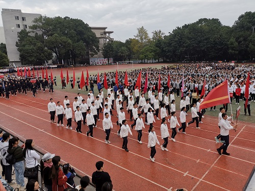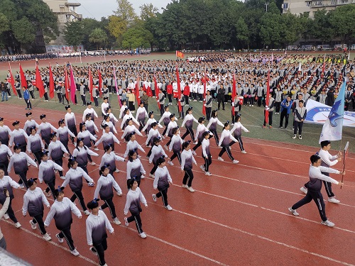 青春的腳步,快如疾風(fēng);綻放的笑容,燦若春花。迎著十月的涼風(fēng),沐浴金秋的陽光,在這橙黃橘綠的美好季節(jié),瀘州高中迎來了2020年秋季田徑運動會。各班方陣在國旗隊、鮮花隊、彩旗隊的引領(lǐng)下閃亮登場。