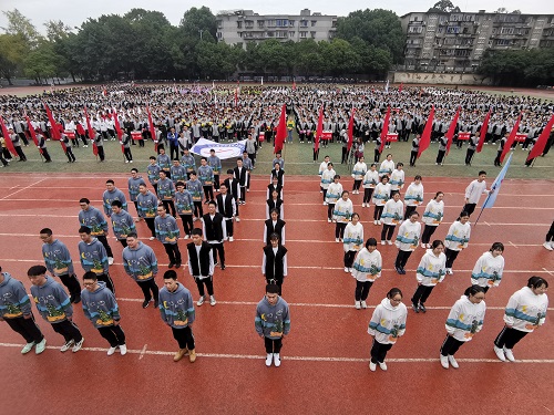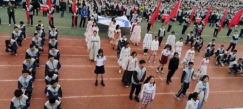 武術(shù)、太極、街舞、串燒表演……伴隨著主持人的介紹,各具特色的吸睛班服、響亮的班級口號,瀘高學(xué)子身著各色的服裝,邁著鏗鏘有力的步伐依次走過主席臺,勃勃英姿、肆意飛揚。各個方陣 “八仙過海,各顯神通”。有憨態(tài)可掬的卡通人物,也有動感十足的舞蹈表演等等。