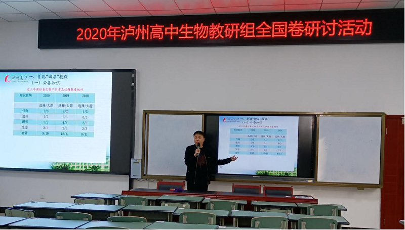 堅(jiān)持目標(biāo)導(dǎo)向才能少走彎路,精細(xì)落實(shí)雙核培養(yǎng)才能事半功倍。在新舊高考轉(zhuǎn)型的關(guān)鍵時(shí)期,瀘州高中生物組按照學(xué)校的總體安排部署于2020年11月9日專(zhuān)門(mén)針對(duì)高考試題開(kāi)展了主題教研活動(dòng)。本次活動(dòng)由教研組長(zhǎng)李碧秋老師主持,生物組全體教師參加?;顒?dòng)議程:一是劉俊程老師:緊扣“四層”授課,圍繞“四翼”命題;二是路平老師:全國(guó)卷試卷分析及閱卷反饋;三是2017級(jí)備課組長(zhǎng)路平老師:2017級(jí)生物備考交流;四是2018級(jí)備課組長(zhǎng)唐茂華:分享2018級(jí)生物備考策略;五是教研組長(zhǎng)李碧秋:形成合力建設(shè)生物學(xué)科中心?;顒?dòng)在李碧秋組長(zhǎng)的主持下拉開(kāi)帷幕。