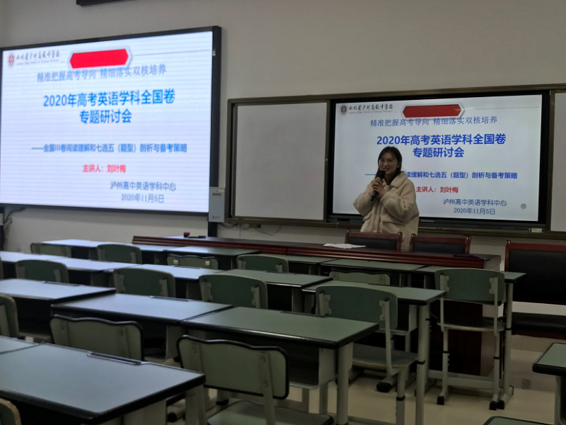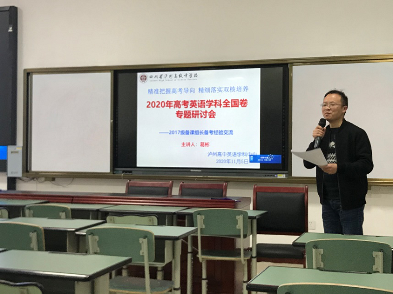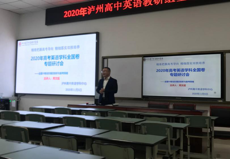 2020年11月5日,瀘州高中英語(yǔ)學(xué)科中心根據(jù)學(xué)校工作部署,在致知樓108公開(kāi)課教室舉行了“2020年瀘州高中英語(yǔ)學(xué)科全國(guó)卷研討會(huì)”。全體教研組教師參加了學(xué)習(xí)研討。