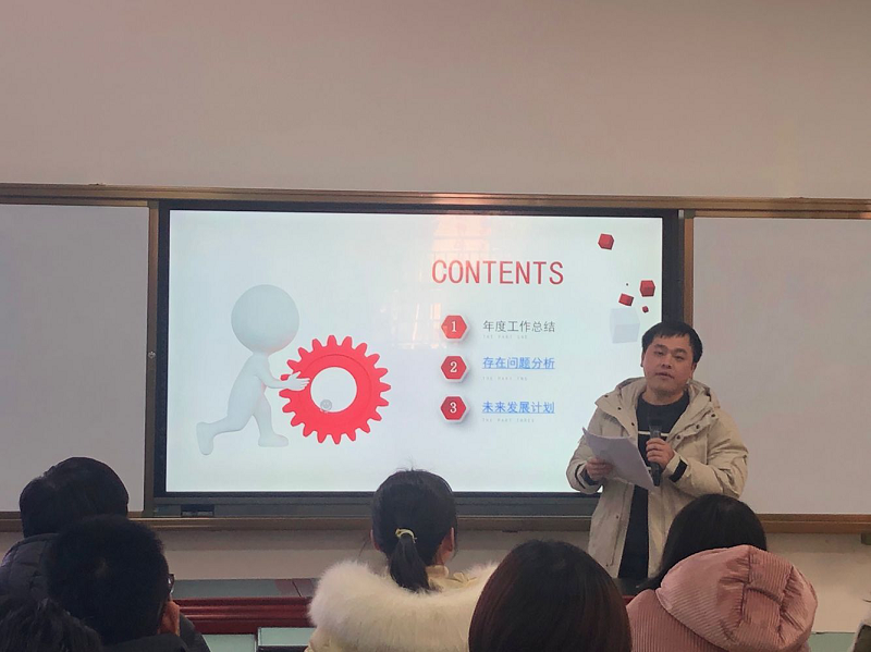第一部分,活動(dòng)伊始,吳子銀老師以“團(tuán)結(jié)協(xié)作,成績(jī)突出”為題,從亮點(diǎn)展示、工作總結(jié)、問題反思和展望明天四個(gè)角度進(jìn)行了工作總結(jié)。談到工作和亮點(diǎn),吳老師從凝聚集體智慧,教學(xué)成績(jī)突出、名師導(dǎo)航,優(yōu)化教學(xué)模式、 高考試題研討,把握高考試題特點(diǎn)、青優(yōu)課打磨,成績(jī)突出、青藍(lán)工程,關(guān)注青年教師成長(zhǎng)、各類公開課、展示課順利進(jìn)行六方面進(jìn)行了總結(jié),并對(duì)組內(nèi)教師取得的成就給予了高度評(píng)價(jià)。雖成果顯著,但也出現(xiàn)了些許問題,值得反思,諸如備課教學(xué)成績(jī)還存在很大提升空間、教研組師資結(jié)構(gòu)有待優(yōu)化等問題。最后,吳老師對(duì)新的一年提出了展望,強(qiáng)調(diào)應(yīng)更加關(guān)注學(xué)科中心建設(shè)、關(guān)注青年教師的成長(zhǎng),優(yōu)化教師結(jié)構(gòu)、優(yōu)化課堂結(jié)構(gòu),推進(jìn)課堂改革等。