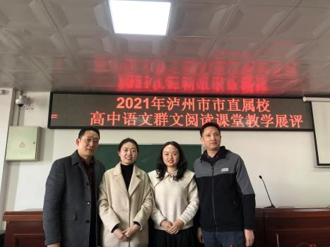 2021年3月23日上午,瀘州市市直屬學(xué)校高中語文群文閱讀課堂教學(xué)展評(píng)活動(dòng)在瀘州外國(guó)語學(xué)校開展,我校高一語文教師梁琪、李丹代表瀘州高中參加比賽,兩位選手準(zhǔn)備充分,表現(xiàn)出色,成績(jī)斐然;高一新分新調(diào)教師積極參加活動(dòng),聽課學(xué)習(xí),汲取經(jīng)驗(yàn),獲益匪淺。