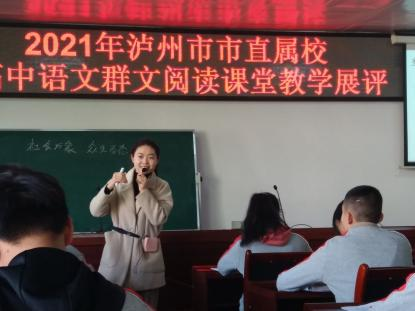 2021年3月23日上午,瀘州市市直屬學(xué)校高中語文群文閱讀課堂教學(xué)展評活動在瀘州外國語學(xué)校開展,我校高一語文教師梁琪、李丹代表瀘州高中參加比賽,兩位選手準(zhǔn)備充分,表現(xiàn)出色,成績斐然;高一新分新調(diào)教師積極參加活動,聽課學(xué)習(xí),汲取經(jīng)驗,獲益匪淺。