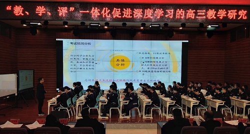 相互交流、充分研討,帶領(lǐng)學(xué)生戰(zhàn)勝高考;顒釉谖倚8呷瘜W(xué)教師陳偉執(zhí)教的高三測試講評示范課中拉開序幕。隨后,瀘縣二中青年教師張琨執(zhí)教了一堂高三化學(xué)二輪復(fù)習(xí)研究課。瀘州老窖天府中學(xué)陳德群老師以“做智慧之師,鑄能力之劍”為題,匯報了瀘州老窖天府中學(xué)高2017級高三備考的得失。瀘州市教科所化學(xué)教研員汪華書老師做了市二診化學(xué)成績分析,又以“教、學(xué)、評一體化促進(jìn)深度學(xué)習(xí)的高三教學(xué)思考”為題,分享了新形勢下關(guān)于高三教學(xué)的根本指導(dǎo)方針與具體操作方法。參會教師認(rèn)真觀摩學(xué)習(xí),現(xiàn)場反響積極熱烈!