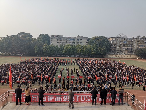 春回大地,萬象更新;旌旗獵獵,誓言錚錚。為進(jìn)一步鼓舞師生備戰(zhàn)高考的昂揚(yáng)士氣,吹響進(jìn)軍沖刺的百日號(hào)角,接續(xù)譜寫高考的輝煌戰(zhàn)績,2月24日下午,瀘州高中在忠山校區(qū)召開2018級(jí)高考百日誓師大會(huì)。瀘州高中黨委書記、校長陳云超出席大會(huì)并發(fā)表講話,副校長陶俊梅、洪波、方杰、工會(huì)主席劉中楷參與大會(huì),2018級(jí)全體師生用誓詞抒發(fā)激揚(yáng)斗志,用行動(dòng)彰顯備戰(zhàn)勇毅,初心如磐向未來。