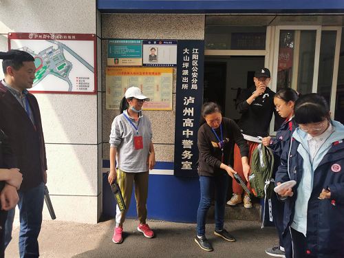 為加強學(xué)校的安全管理工作,有效預(yù)防校園暴力事件發(fā)生,保障廣大師生的人身安全,構(gòu)建平安校園,3月16日下午,瀘州高中在忠山校區(qū)東校門、西校門、敏行樓、望宇樓、騰驥樓開展了管制刀具和違禁品專項排查。副校長陶俊梅,安全科主任劉彬,德育科主任張宏程、副主任楊亮全程參與,本次活動還邀請了大山坪派出所的李露警官參加。