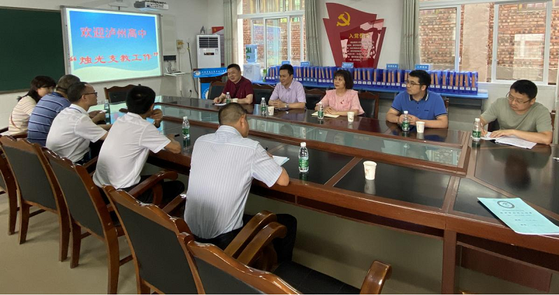 (瀘州高中“燭光支教”團隊與馬嶺中學(xué)領(lǐng)導(dǎo)交流)