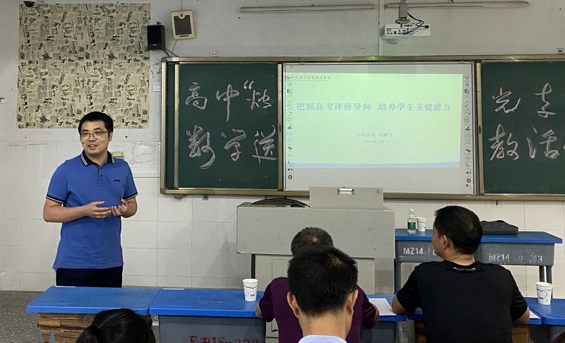 何鵬飛老師以《把握高考評價導(dǎo)向,培養(yǎng)學(xué)生關(guān)鍵能力》為題,詳細說明了通過分析試題,探明考點;解構(gòu)考點,分層教學(xué);重構(gòu)教學(xué),因材施教的教學(xué)思路,著重強調(diào)了高考真題在教學(xué)中的重要指向作用。