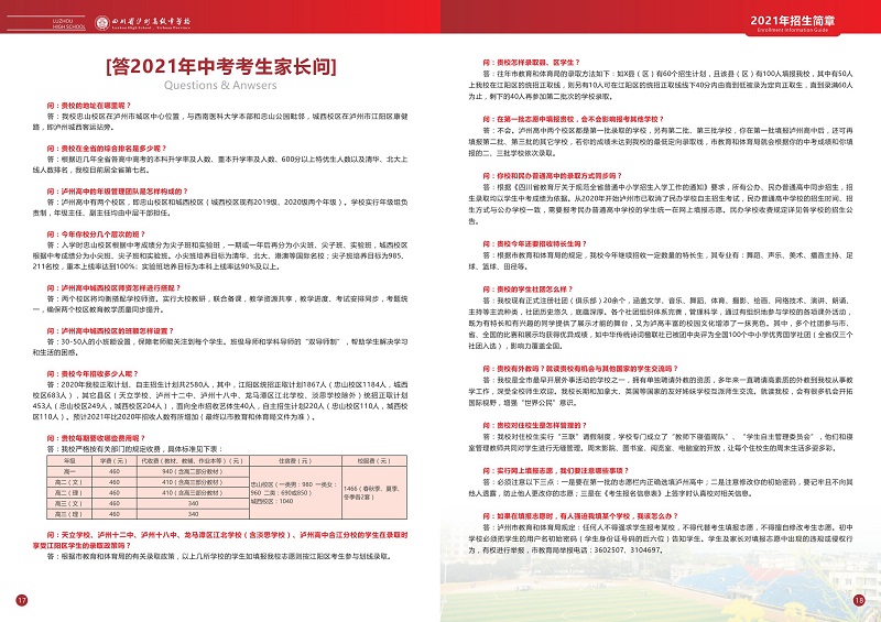 瀘州高中2021年招生簡章