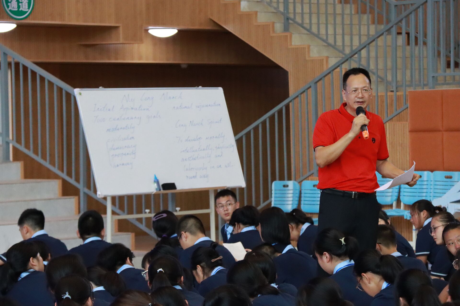 紅色是近七十年來瀘高人的精神底色。開學(xué)第一周,瀘州高中圍繞百年黨史,致敬黨的百年風(fēng)華,開展了習(xí)近平總書記在中國共產(chǎn)黨成立100周年慶祝大會(huì)的講話精神學(xué)生宣講會(huì)、紅軍長征史雙語講座、《請(qǐng)黨放心、強(qiáng)國有我》主題朗誦以及周末影院央視《開學(xué)第一課》專場等一系列活動(dòng),以厚植瀘高學(xué)子紅色情懷,堅(jiān)定青年學(xué)生永遠(yuǎn)跟黨走的理想信念。
