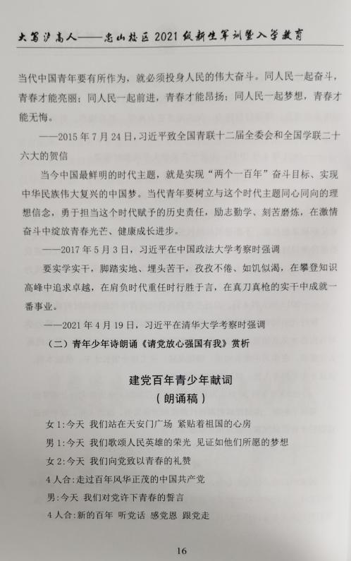 《請(qǐng)黨放心、強(qiáng)國有我》朗誦詞編入新生軍訓(xùn)暨入學(xué)教育校本教材