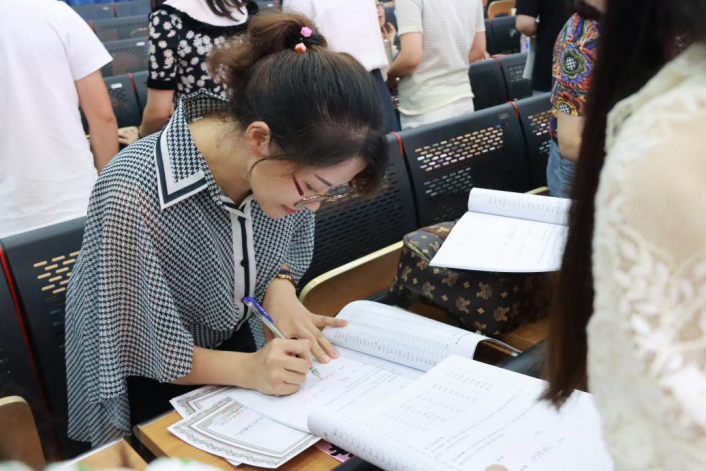 所有徒弟起立面向師父,接受師父贈(zèng)送《瀘州高中徒弟成長(zhǎng)手冊(cè)》,徒弟們雙手將《師徒結(jié)對(duì)承諾書(shū)》遞給師父請(qǐng)師父簽字。