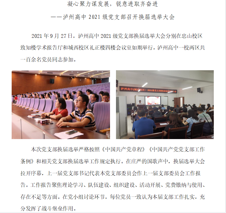 凝心聚力謀發(fā)展,銳意進(jìn)取齊奮進(jìn)——瀘州高中2021級(jí)黨支部召開換屆選舉大會(huì)