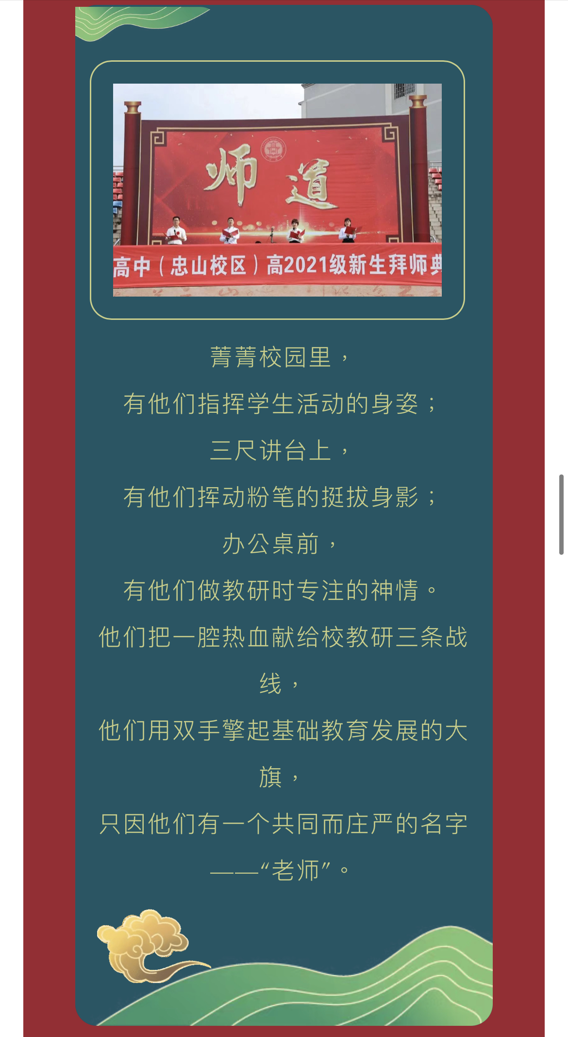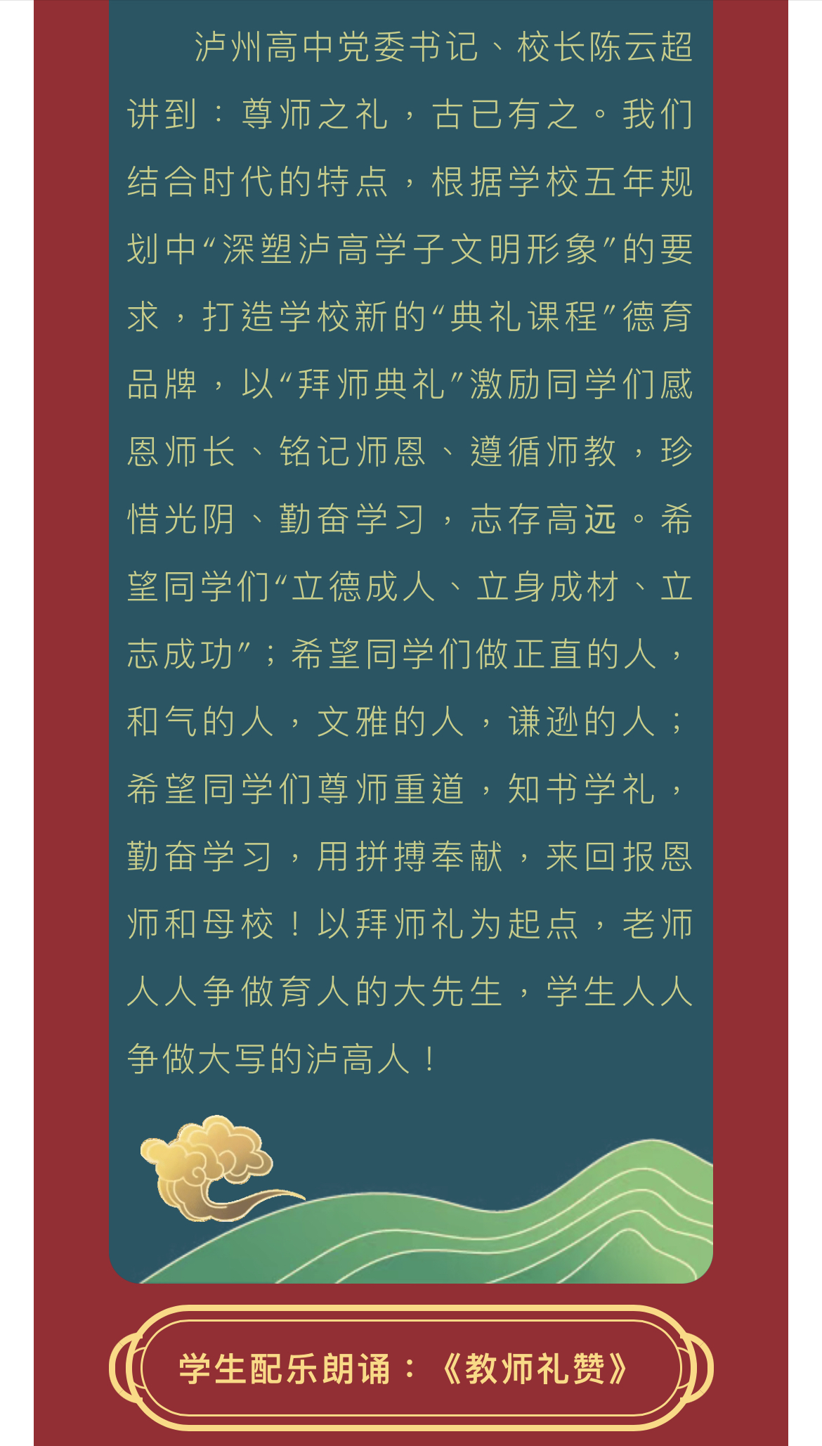 “尊師重道 薪火相傳”——瀘州高中2021級拜師典禮