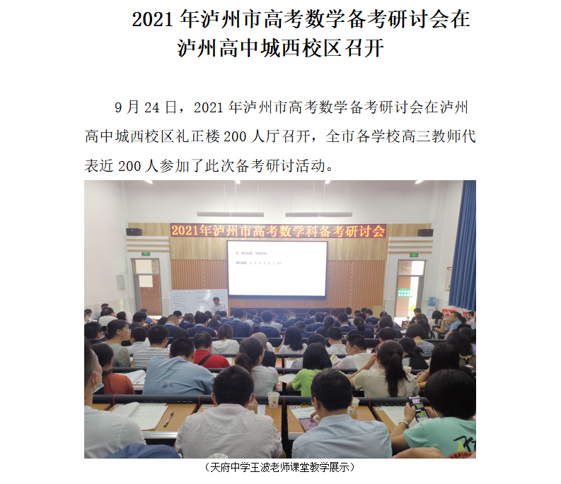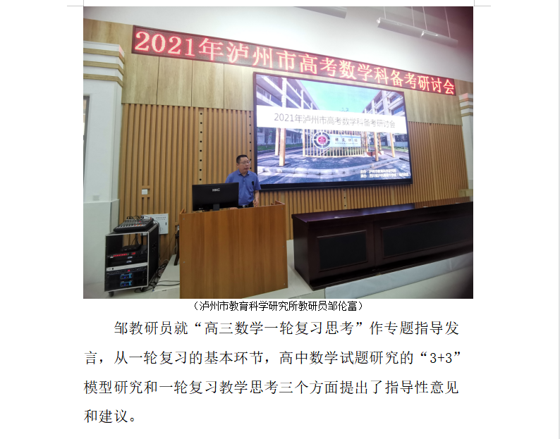 2021年瀘州市高考數(shù)學(xué)備考研討會(huì)在瀘州高中城西校區(qū)召開