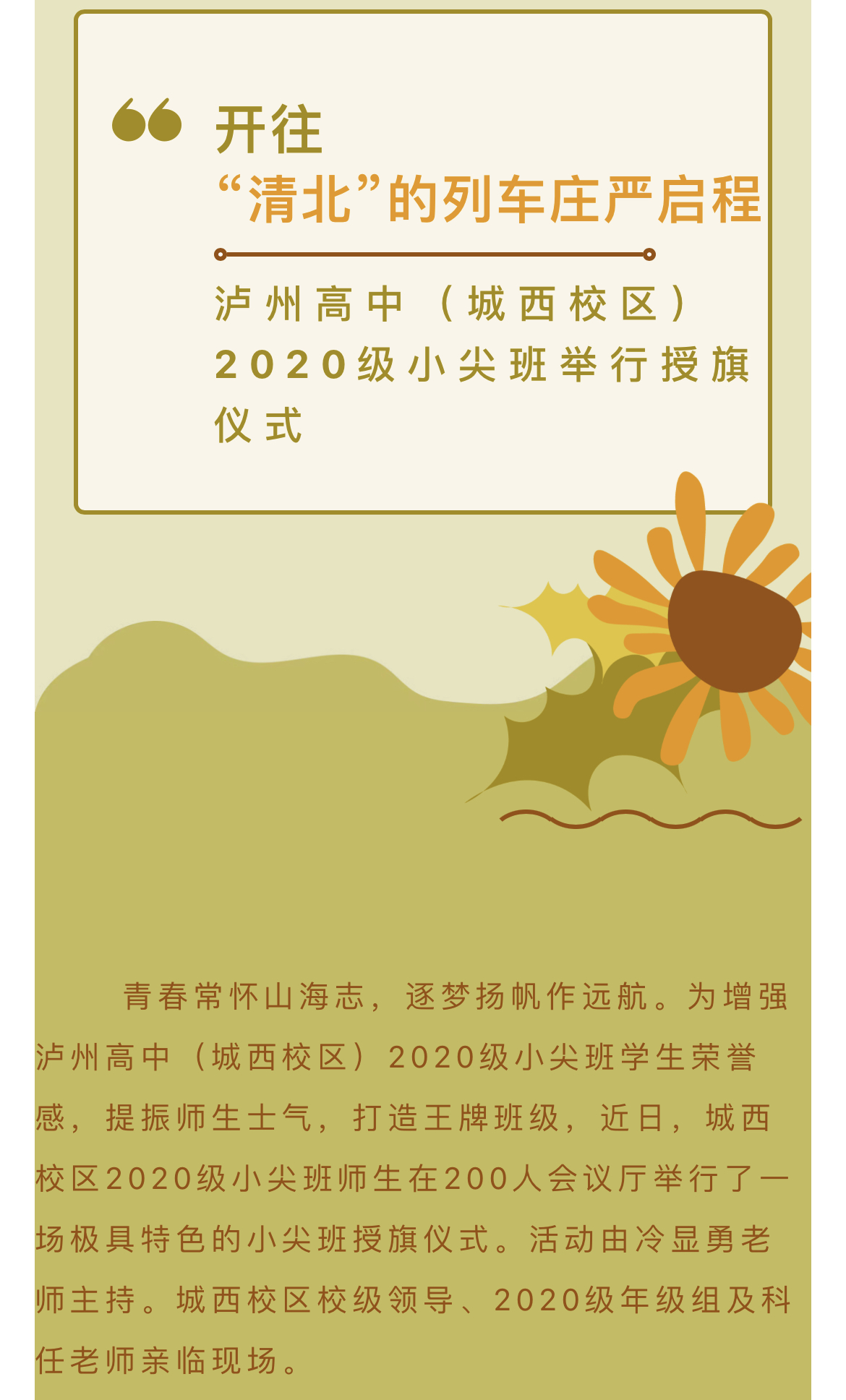 開(kāi)往“清北”的列車(chē)莊嚴(yán)啟程|瀘州高中(城西校區(qū))2020級(jí)小尖班舉行授旗儀式