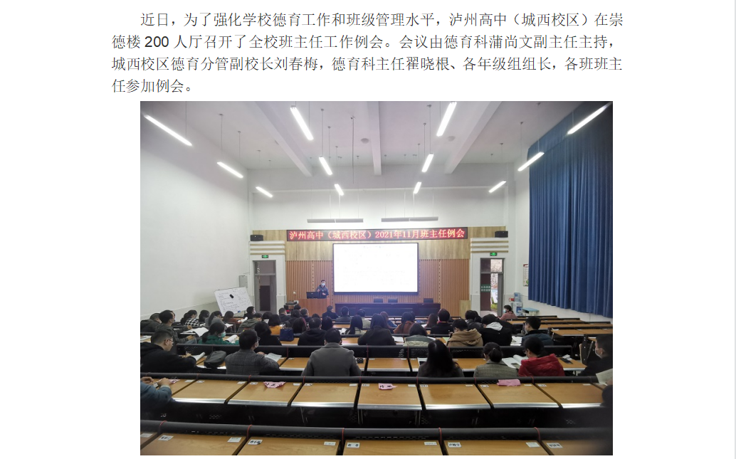 瀘州高中(城西校區(qū))召開11月班主任心得分享會(huì)