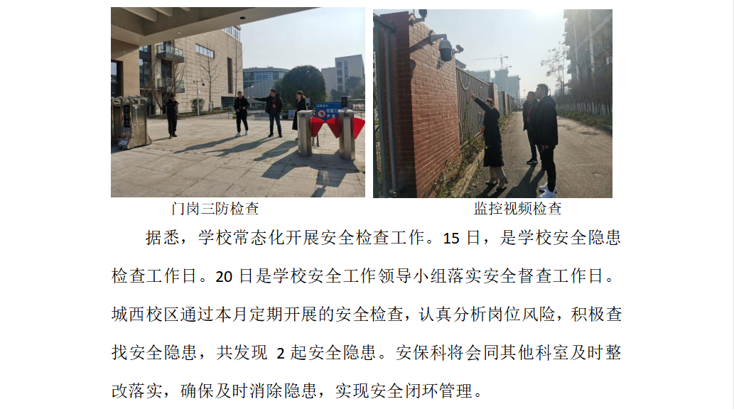 開展定期安全檢查,筑牢長久安全防線——瀘州高中城西校區(qū)開展12月安全隱患排查工作