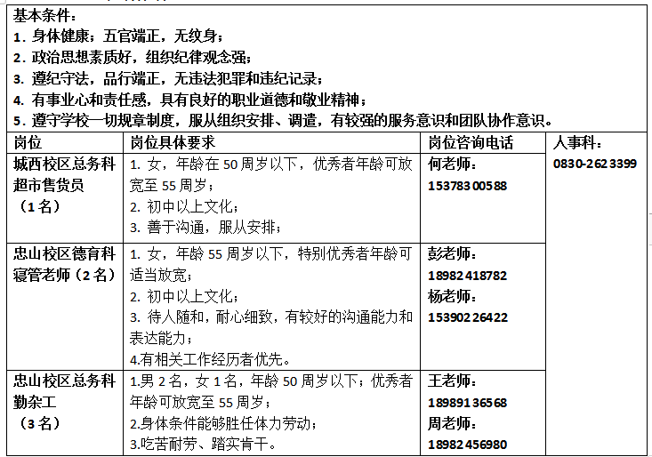 1、經(jīng)體檢、政審合格的人員,實(shí)行試用期,試用期為1個(gè)月,試用期合格者與我校簽訂勞動(dòng)合同或勞務(wù)合同。
