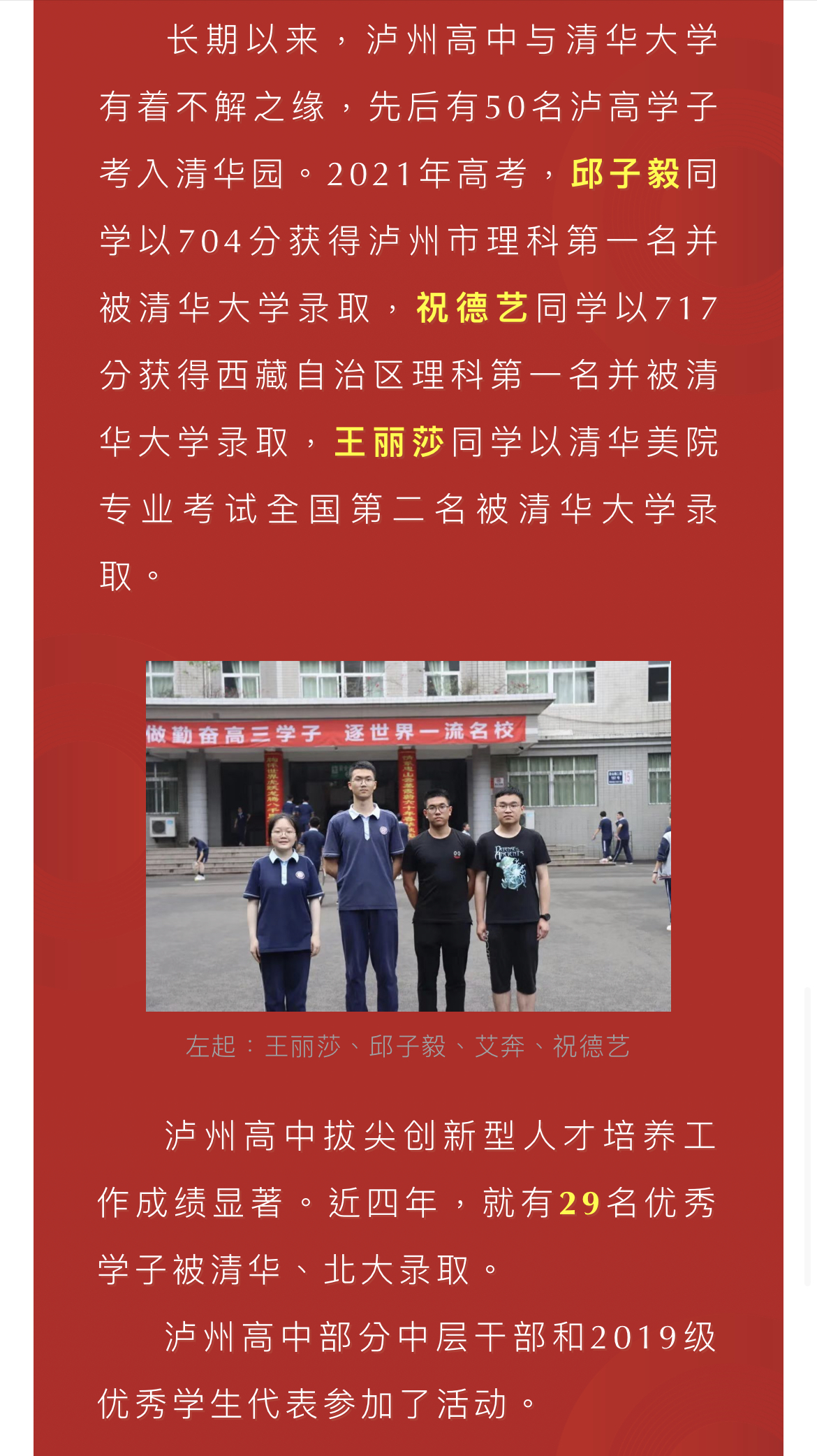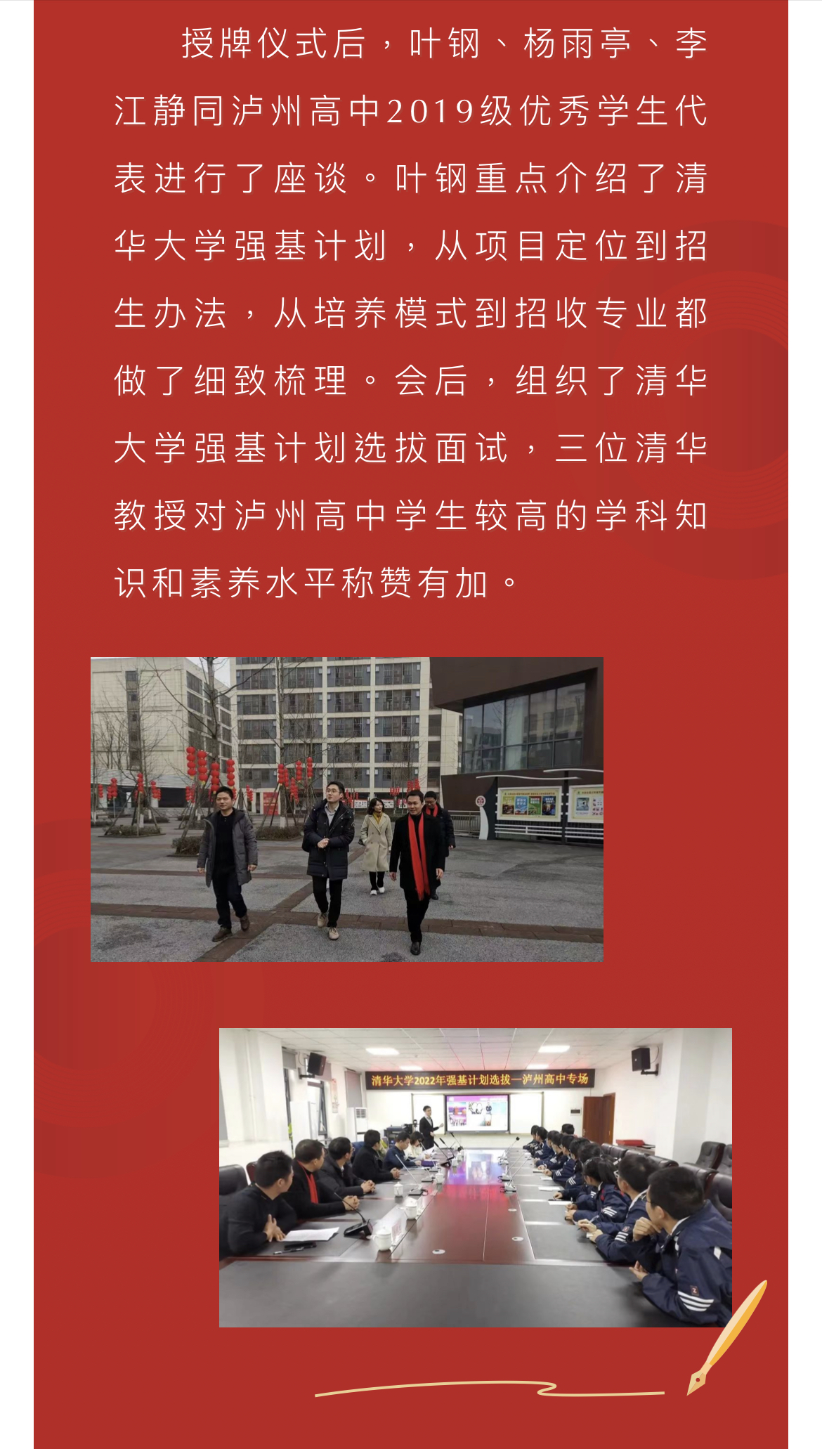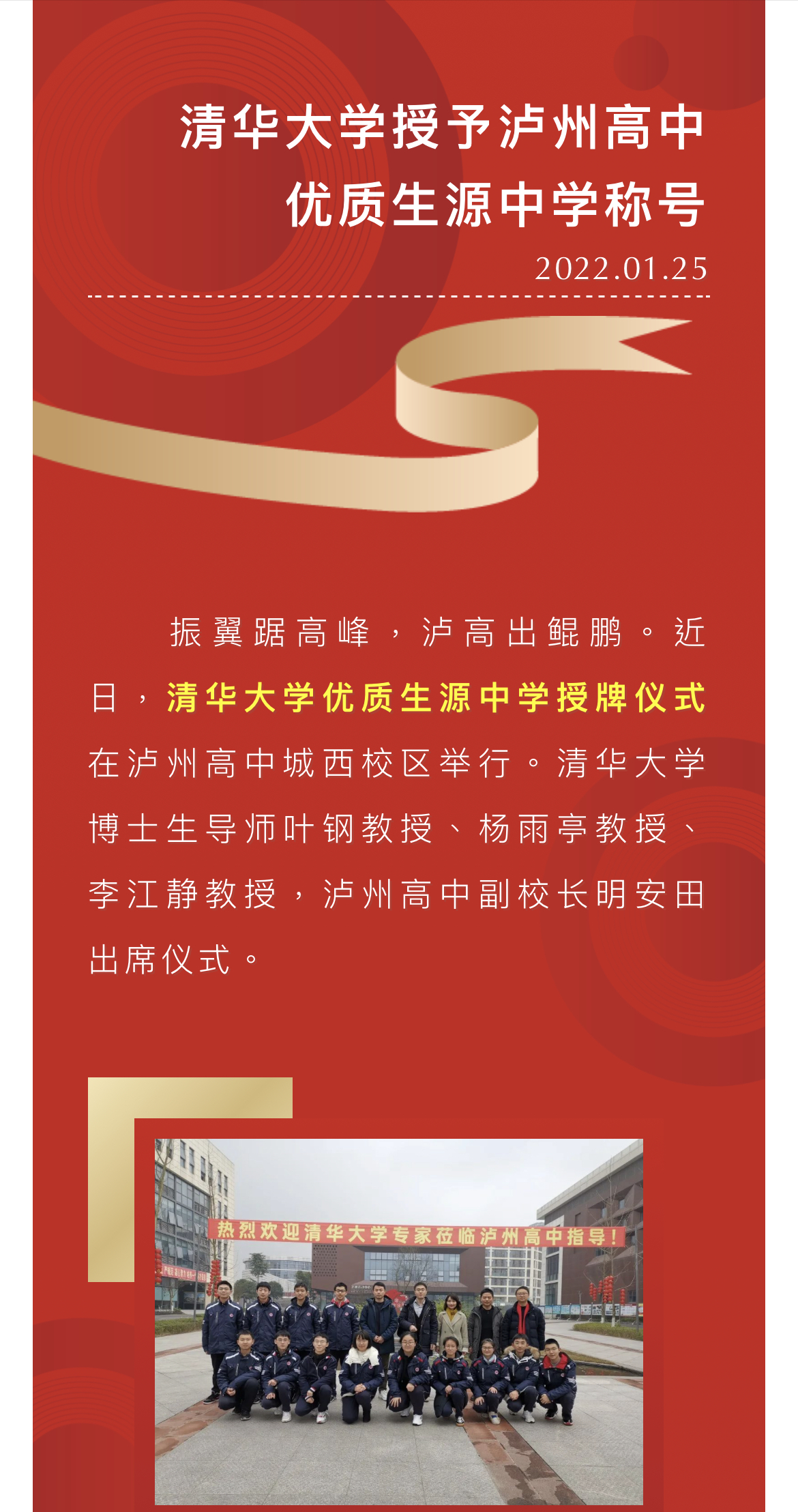 重磅!清華大學授予瀘州高中優(yōu)質生源中學稱號