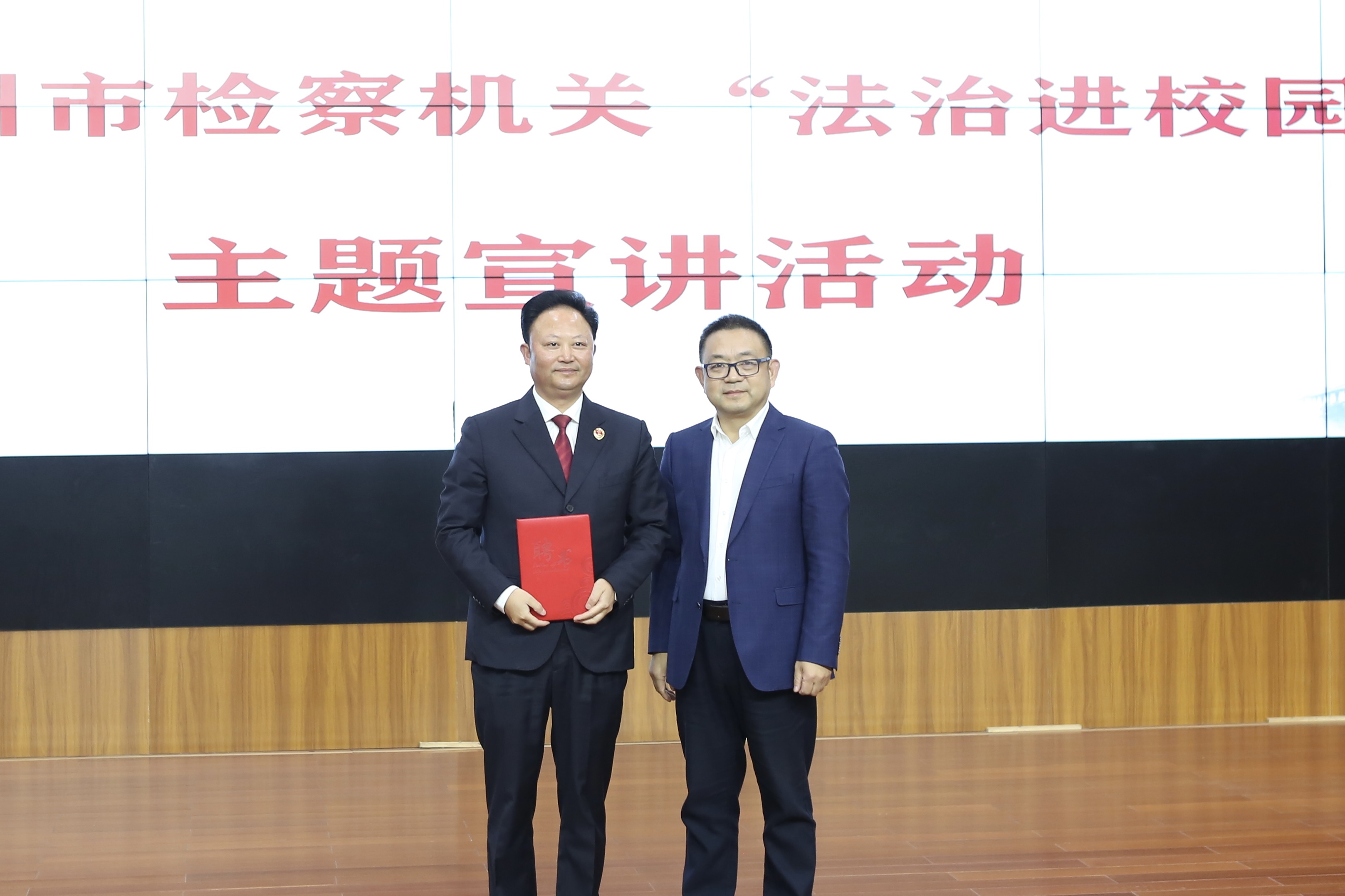 在與會人員熱烈的掌聲中,陳云超校長向劉孝勇檢察長頒發(fā)了瀘州高中法治副校長聘書。