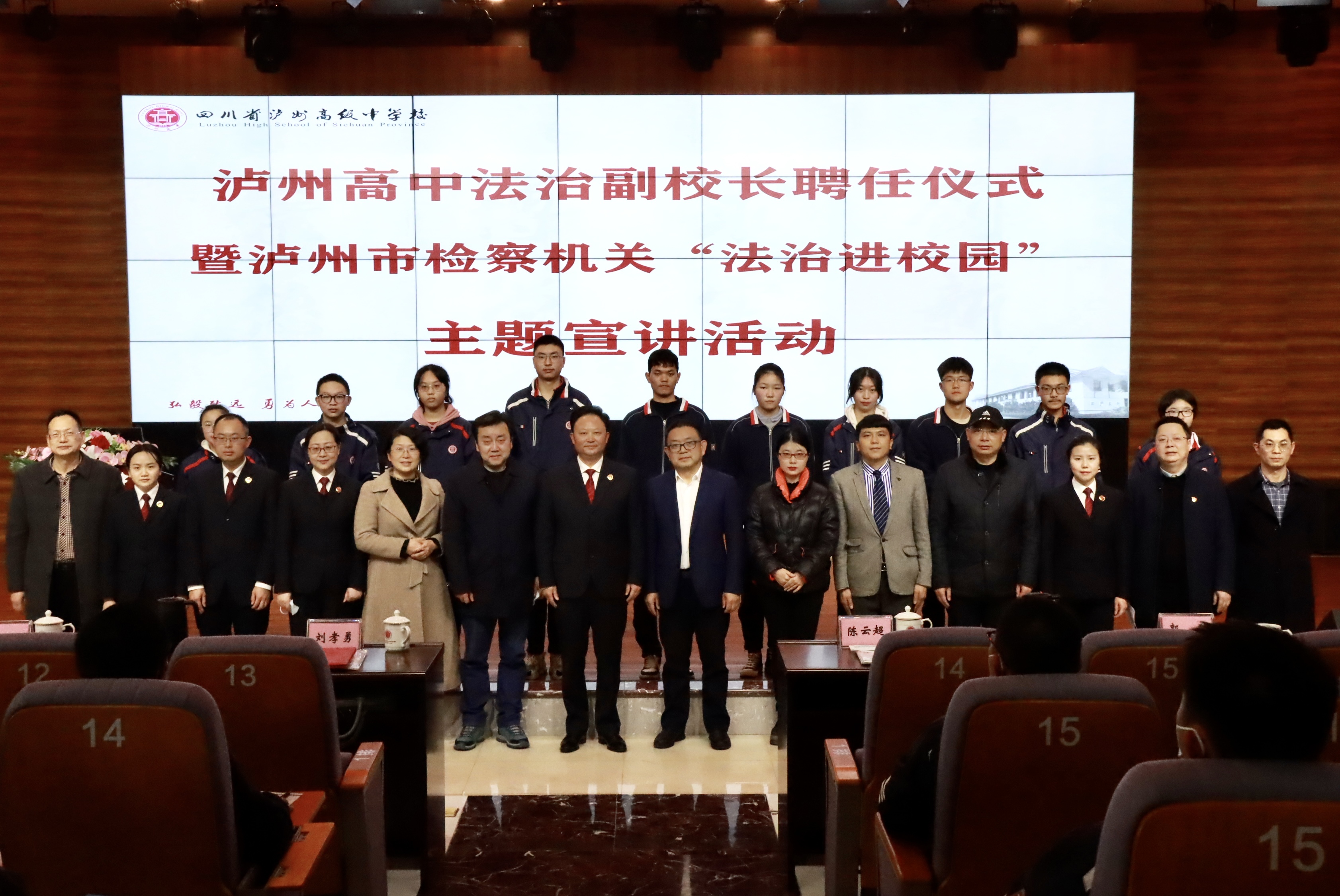 為深入開展法制宣傳教育,營造良好校園法治環(huán)境,提升學(xué)生法治素養(yǎng),3月1日,瀘州高中隆重舉行了法治副校長聘任儀式暨瀘州市檢察機關(guān)“法治進校園”主題宣講活動。瀘州市人民檢察院黨組書記、檢察長劉孝勇等應(yīng)邀出席聘任儀式。瀘州高中黨委書記、校長陳云超等中層以上干部代表以及師生代表300余人參加活動。