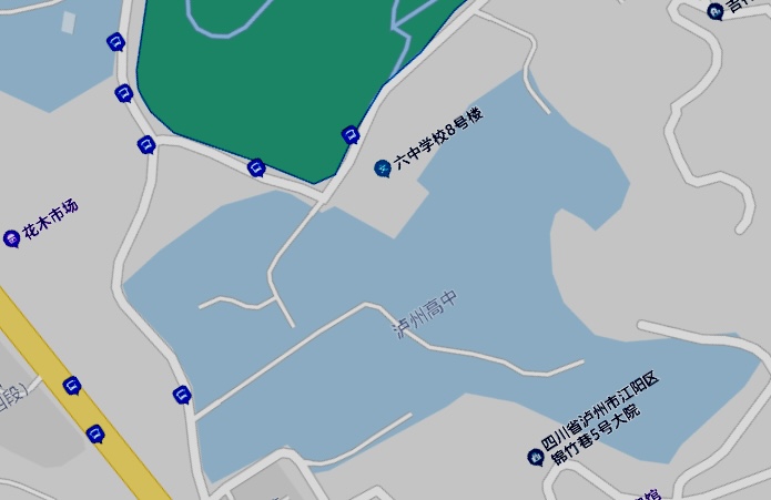 ▲高德地圖上瀘高忠山校區(qū)形似一匹飛奔的駿馬 揭牌儀式后,肖林、李渝江在陳云超等校領(lǐng)導(dǎo)的陪同下參觀(guān)改擴(kuò)建中的校園。
