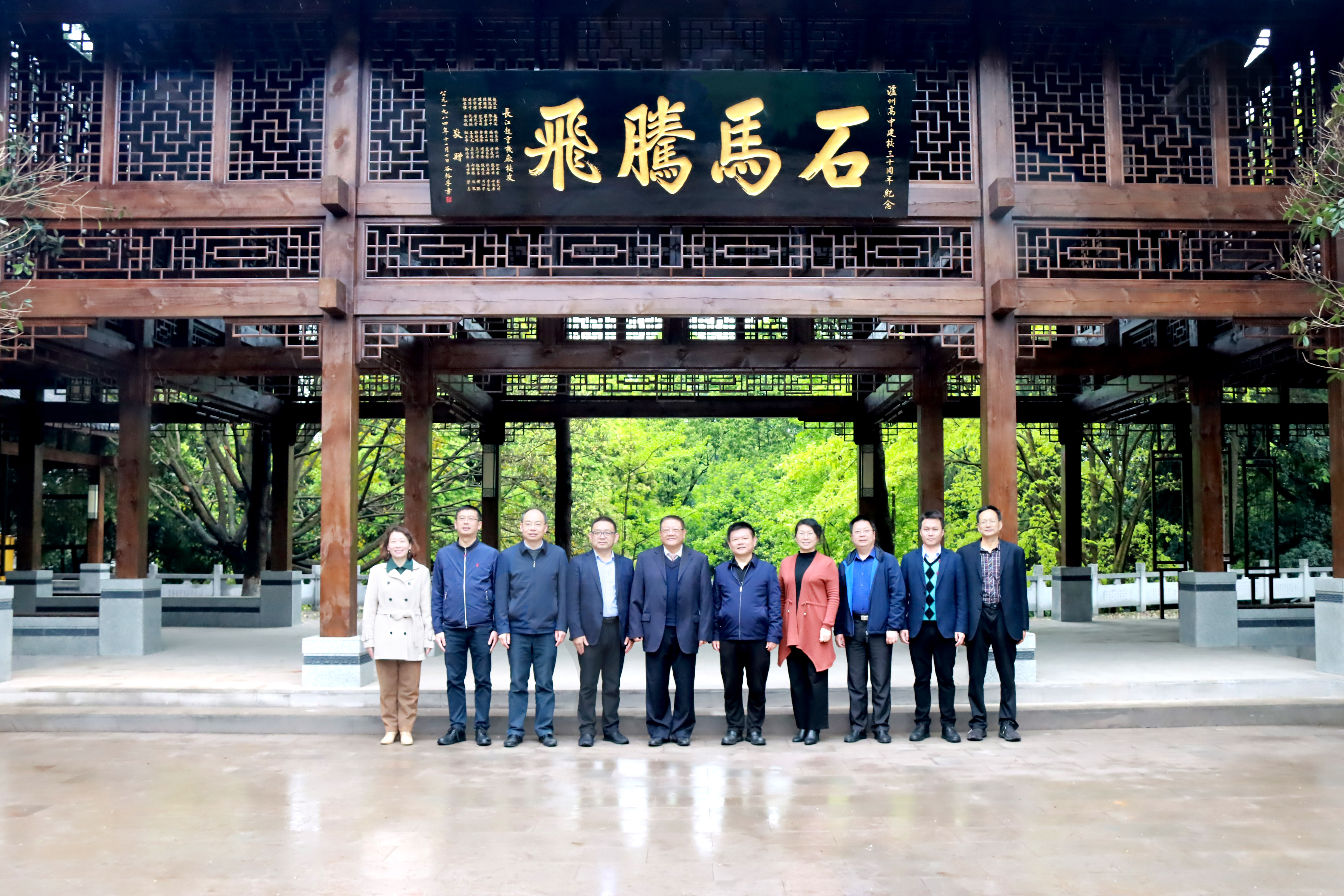 ▲時(shí)任校長(zhǎng)谷裕孚率全校教職員工前門(mén)接匾 瀘州高中1987年入校的校友洪波(現(xiàn)任瀘州高中副校長(zhǎng))回憶,1988年“石馬騰飛”牌匾懸掛在原學(xué)校圖書(shū)館正門(mén)上方,當(dāng)時(shí)師生出入圖書(shū)館,“石馬騰飛”四個(gè)大字都會(huì)映入眼簾,因此對(duì)這塊匾印象特別深刻。 ▲現(xiàn)保存于瀘州高中校史陳列室 “石馬騰飛”取義于忠山校區(qū)位于石馬山和忠山之間,俯瞰校園形似一匹飛奔的駿馬,寓有“快馬加鞭、一馬當(dāng)先、馬到功成、汗馬功勞”等深意。
