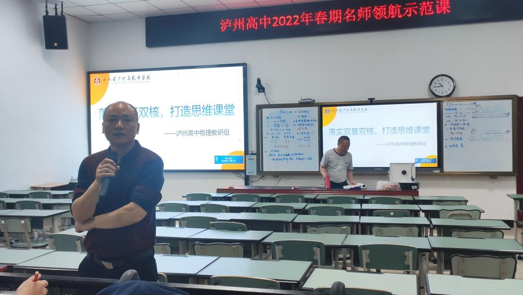 為優(yōu)化課堂教學(xué)結(jié)構(gòu),創(chuàng)新課堂教學(xué)模式,提高課堂教學(xué)效益,打造思維課堂,瀘州高中物理教研組于2022年4月24日上午在瀘州高中忠山校區(qū)致知樓108開(kāi)展了“瀘州高中2022年春期名師領(lǐng)航示范課”教研活動(dòng)。全體物理教師參加了本次活動(dòng),教務(wù)科宋永平主任指導(dǎo),瀘州高中物理教研組組長(zhǎng)——汪華海老師主持了本次活動(dòng)。