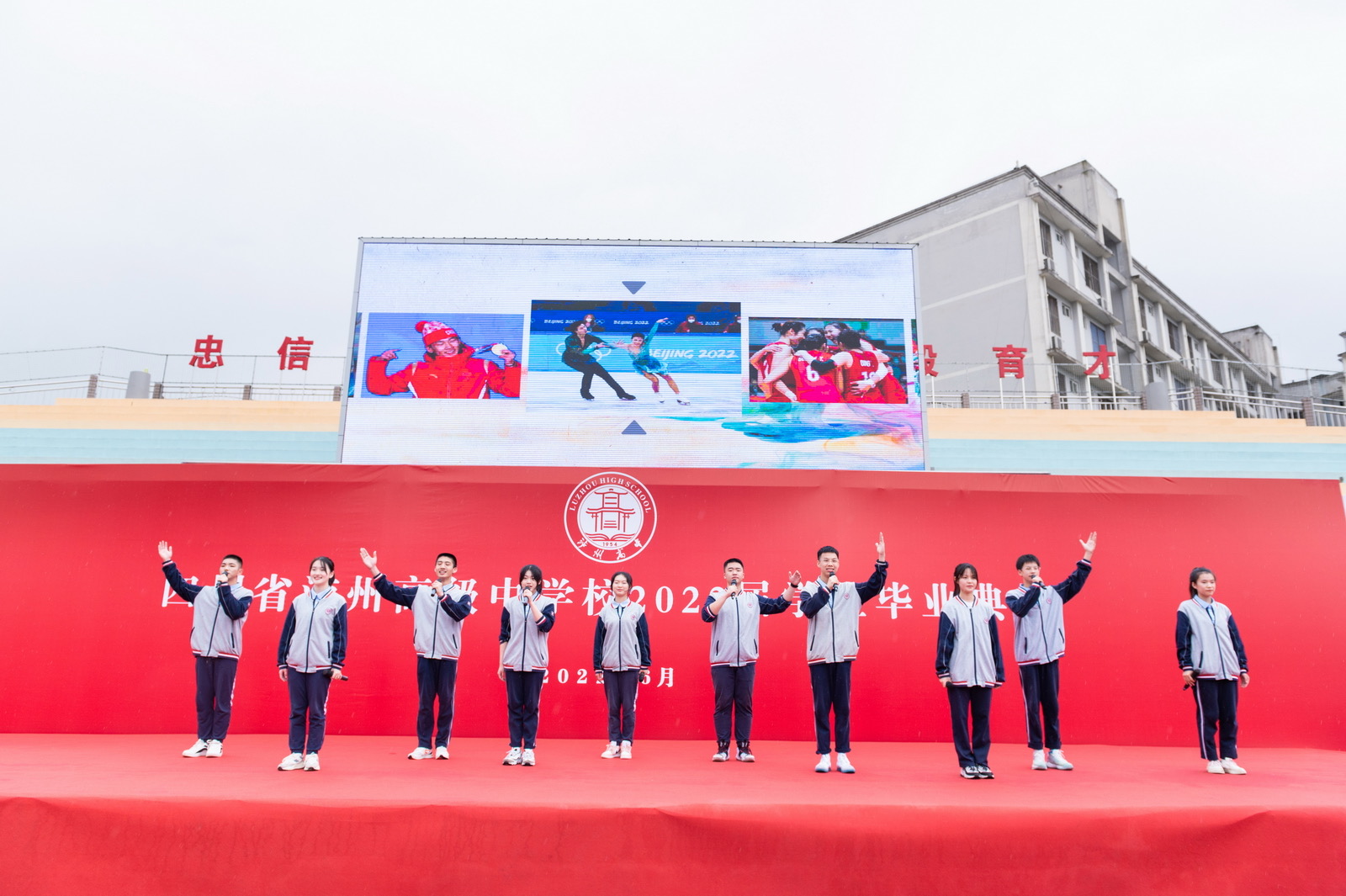 瀘州高中知名校友、瀘州老窖股份有限公司副總經(jīng)理、工會(huì)主席熊娉婷,瀘州高中黨委書記、校長(zhǎng)陳云超,瀘州老窖股份有限公司工會(huì)副主席李倫玉,瀘州老窖股份有限公司團(tuán)委副書記韓瑩瑩,全體校級(jí)領(lǐng)導(dǎo)、中層干部、高三年級(jí)全體老師共聚一堂,冒雨為學(xué)業(yè)有成、即將離開母校、開啟人生新征程的2022屆畢業(yè)生折柳送行。