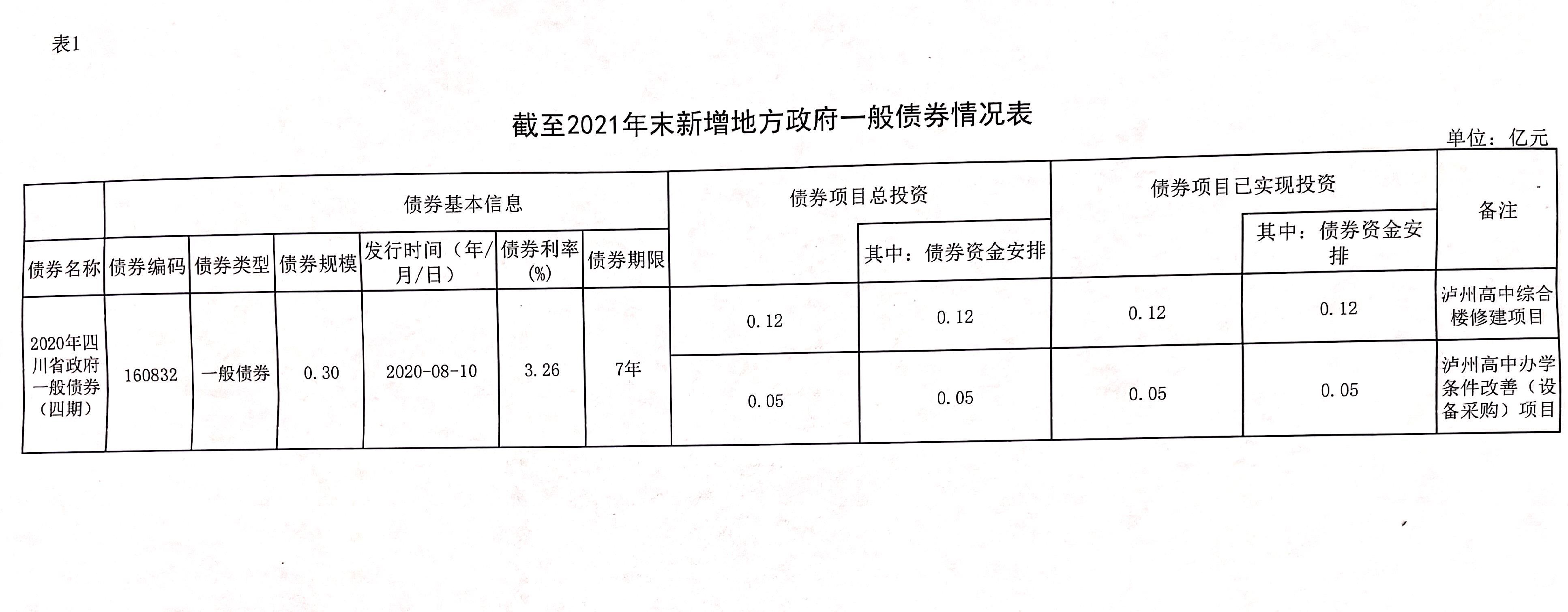 瀘州高中截至2021年末新增地方政府一般債務(wù)情況表