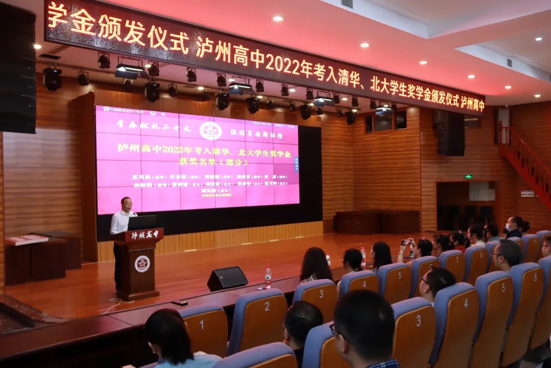 典禮上還分校區(qū)播放了瀘州高中2022年考入清華、北大獎學(xué)金頒發(fā)儀式。奮輯揚帆,榜樣先行,2022年畢業(yè)的優(yōu)秀瀘高學(xué)子們?yōu)槿w在校同學(xué)樹立了榜樣,他們像船,揚起希望的風(fēng)帆;他們像燈,指引前行的道路。