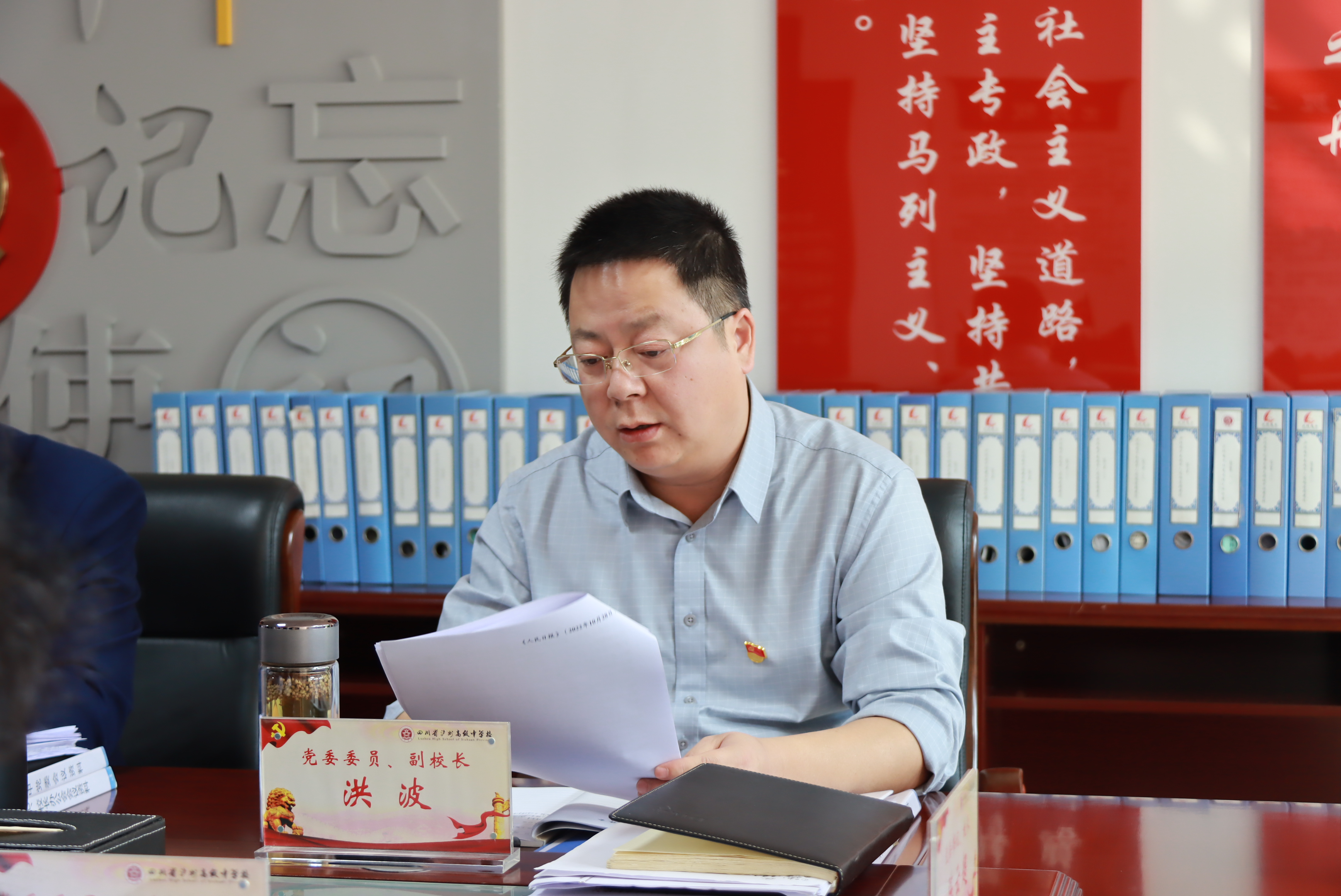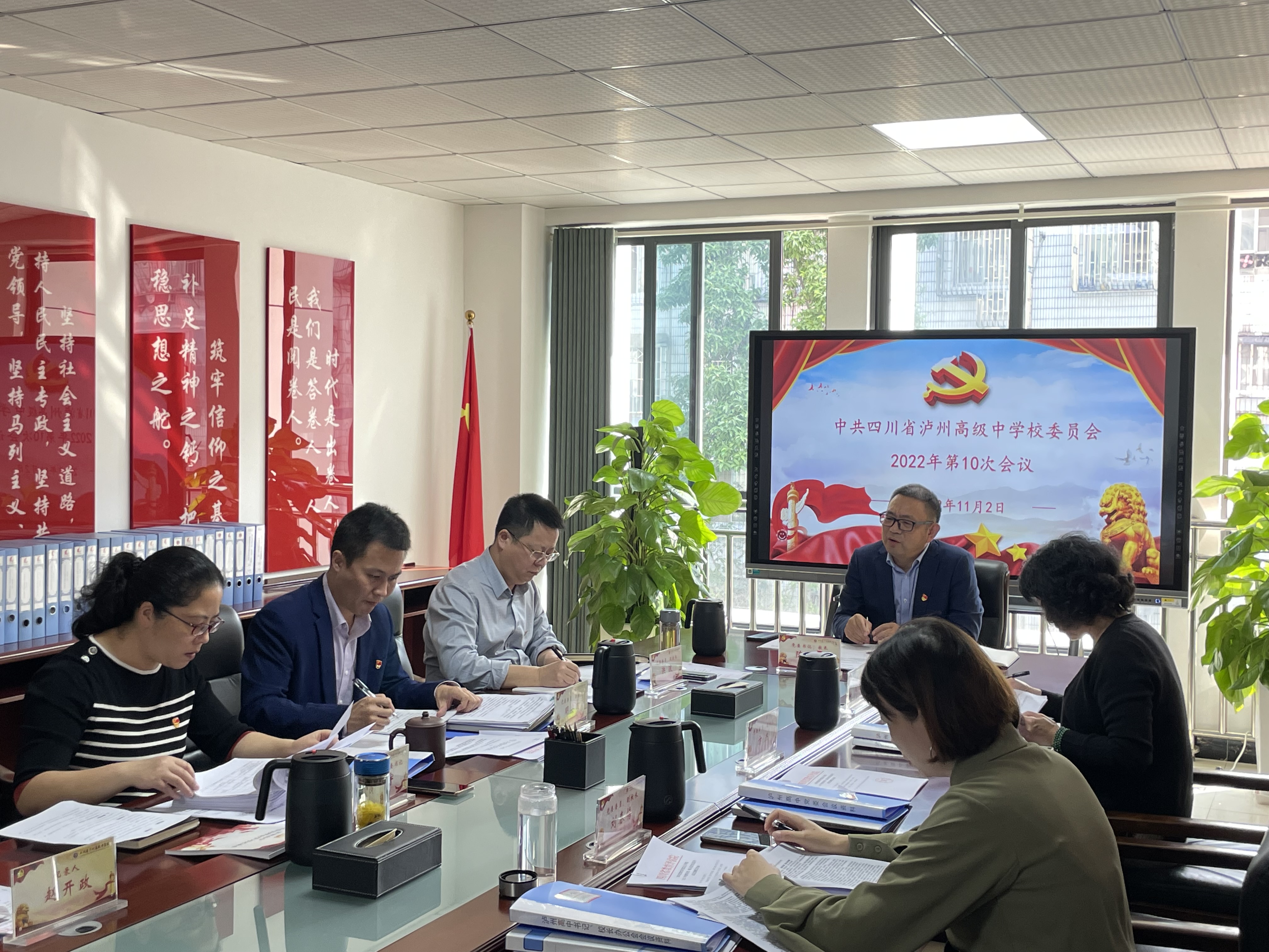 11月2日,瀘州高中黨委理論學(xué)習(xí)中心組召開專題會,集中傳達(dá)學(xué)習(xí)黨的二十大精神。會議由學(xué)校黨委書記、校長陳云超主持,在校黨委委員參加會議。支部書記代表,部門主要負(fù)責(zé)人代表列席會議。