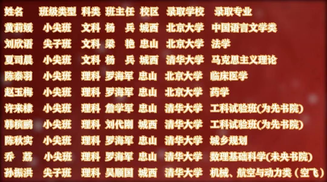 ▲瀘州高中(本部)2022年高考被清華、北大錄取學(xué)生名單