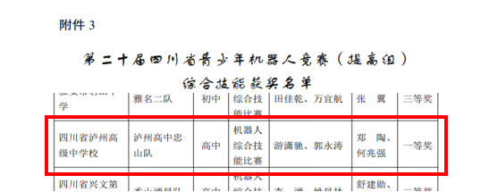喜報|瀘高學子在第二十屆四川省青少年機器人競賽(提高組)綜合技能賽項中獲得一等獎