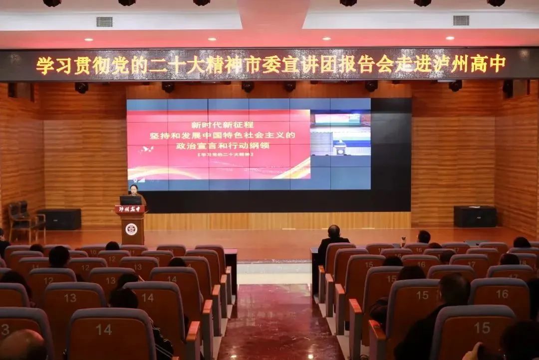 12月5日下午,按照市委統(tǒng)一部署,瀘州市委宣講團(tuán)成員、西南醫(yī)科大學(xué)馬克思主義學(xué)院黨支部書記張圓教授在瀘州高中學(xué)術(shù)報(bào)告廳為全校黨員師生作黨的二十大精神宣講報(bào)告。黨委書記、校長(zhǎng)陳云超,副校長(zhǎng)陶俊梅、洪波、方杰、明安田、劉春梅,紀(jì)委書記劉春宇等校領(lǐng)導(dǎo)出席報(bào)告會(huì)。報(bào)告會(huì)由陶俊梅主持。