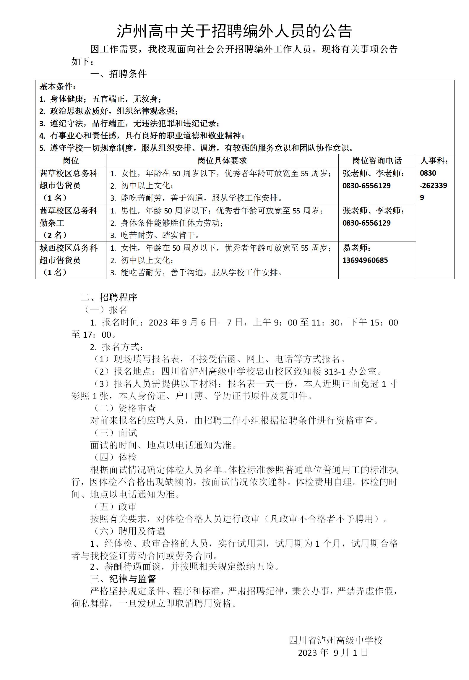 瀘州高中關(guān)于招聘編外人員的公告
