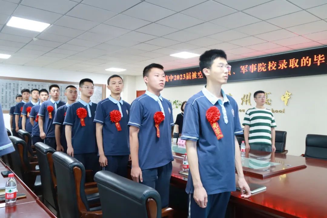 劉彬宣讀了瀘州高中《關(guān)于表?yè)P(yáng)2023屆軍隊(duì)院校錄取畢業(yè)生的決定》,對(duì)廖博坤等35名被軍隊(duì)院校錄取的2023屆畢業(yè)生予以表?yè)P(yáng)。劉彬希望他們繼承和發(fā)揚(yáng)瀘高人忠勇報(bào)國(guó)的優(yōu)良傳統(tǒng),成長(zhǎng)為瀘高學(xué)子從軍報(bào)國(guó)的表率。