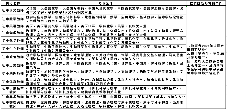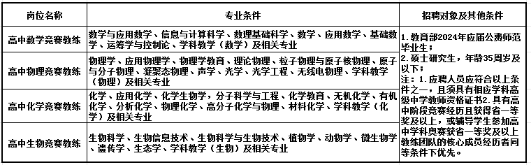 說明:各崗位招聘人數(shù)以正式公告為準。 一、此為招聘預(yù)告,需求崗位須符合事業(yè)單位公開考核招聘條件和程序,具體要求以瀘州市教育和體育局后期發(fā)布的公告為準,請隨時關(guān)注瀘州人事考試網(wǎng)、市教育和體育局官方網(wǎng)站的公告發(fā)布。 聯(lián)系方式: 辦公電話:0830-2623399 王老師:15732154563(競賽教練崗) 何老師:18982473459(高中教師崗) 樊老師:13989126773(初中教師崗) 王老師:18982767076 本次招聘將在重慶西南大學(xué)舉行宣講會及初步考核。 請您做好時間安排,提前了解進校方式,并攜帶簡歷進行現(xiàn)場投遞。 時間:2023年10月15日上午9:00 地點:西南大學(xué)26號教學(xué)樓401教室(宣講會);西南大學(xué)招聘大廳(現(xiàn)場簡歷投遞及初步考核)