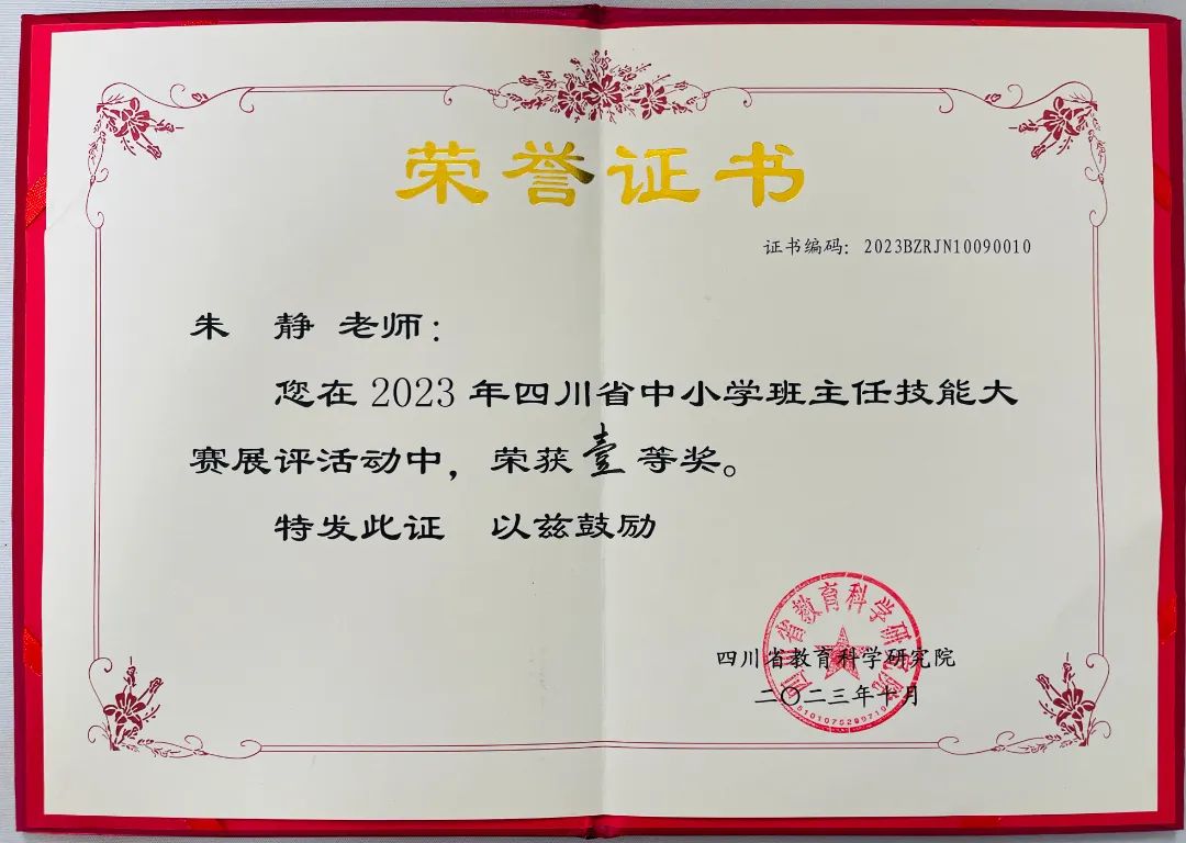 【喜報(bào)】熱烈祝賀朱靜老師在2023年四川省中小學(xué)班主任技能大賽展評(píng)活動(dòng)中榮獲省一等獎(jiǎng)