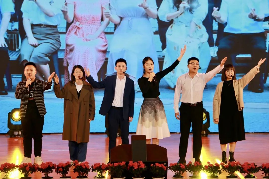 ▲教師合唱《真心英雄》(忠山校區(qū):任磊、許文韜;城西校區(qū):李濟丹、廖心梅;茜草校區(qū):葉洪利、鐘明秀)