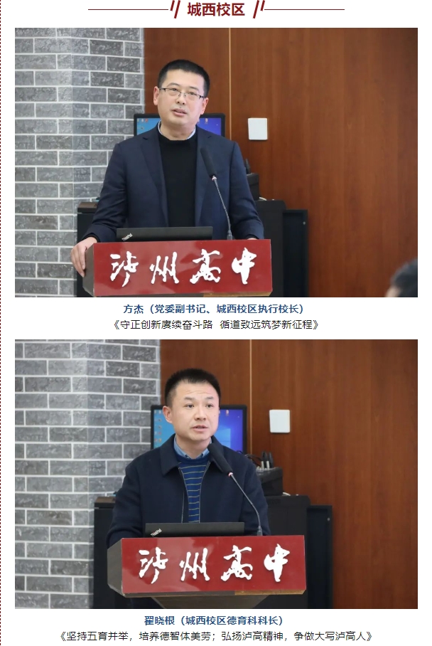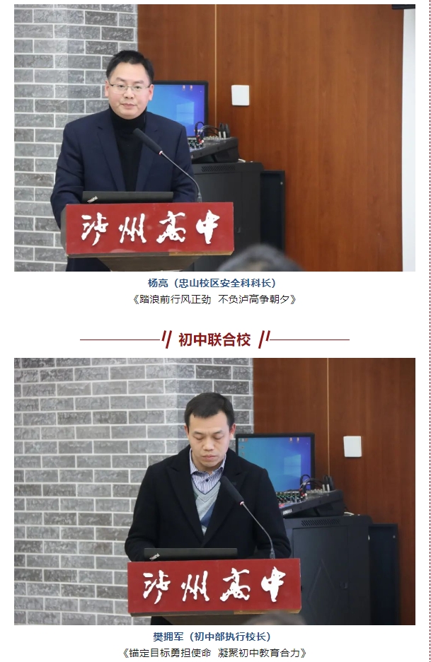 2023年,是瀘州高中發(fā)展歷程中關(guān)鍵的一年。一年來,學(xué)校各校區(qū)、各部門立足主業(yè)、踔厲奮發(fā),書寫出了瀘高新的華章。為總結(jié)2023年工作,聚焦發(fā)展難題,促進(jìn)反思提升,明確發(fā)展方向,不斷提高瀘高隊(duì)伍的整體素質(zhì),2月3日下午,學(xué)校召開了中層以上干部述職大會,全體中層以上干部參加會議。